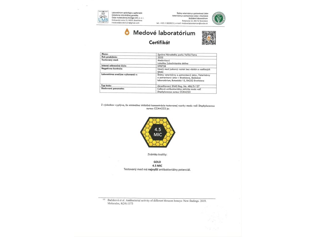 Med z roku 2024 bol ocenený certifikátmi najvyššej kvality.